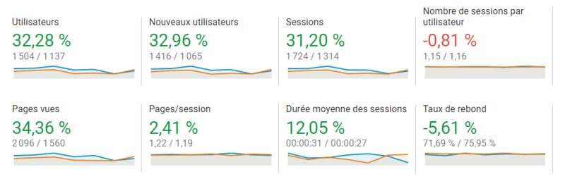 En mettant en parallèle la période du 7 février 2022 au 13 février 2022 (dates de la campagne) à la semaine précédente, ils ont pu se rendre compte d’une augmentation de 32,28 % du nombre de visiteurs et de 32,96 % du nombre de nouveaux utilisateurs. Le nombre de pages vues a également augmenté de 34,36 %, le taux de pages par session de 2,41 % et le taux de rebond a diminué de 5,61 %.